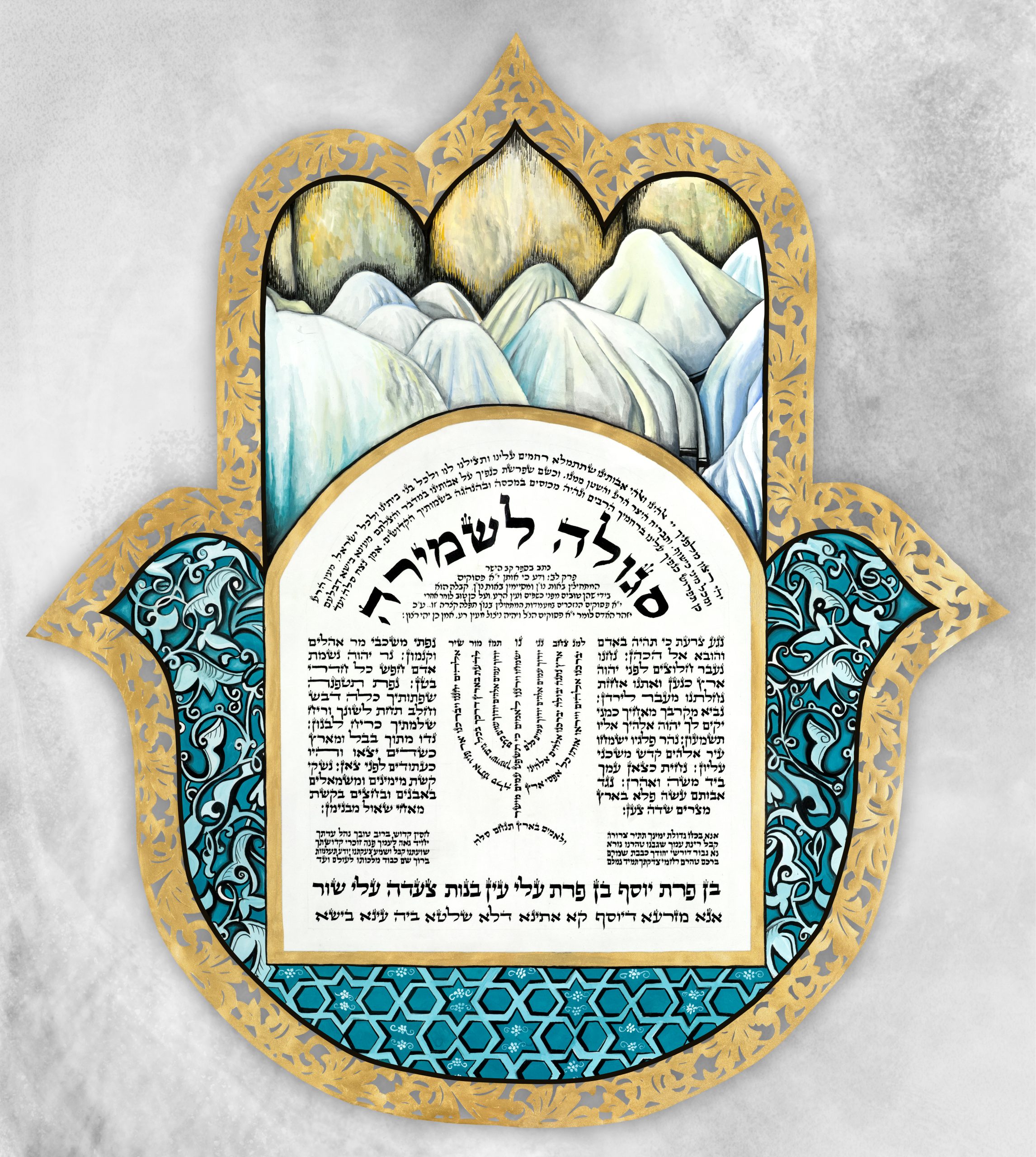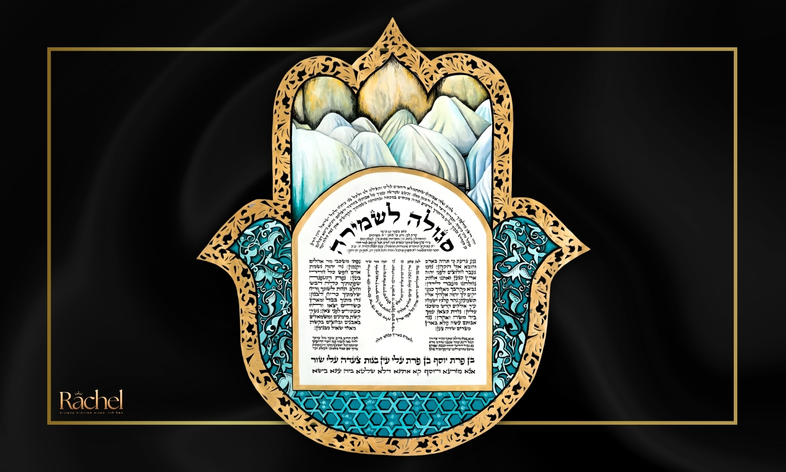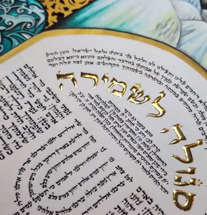 The prayer is written in the form of the Menorah, which according to the Scholar, is used to combine both, the blessing of the material and of the spirit.